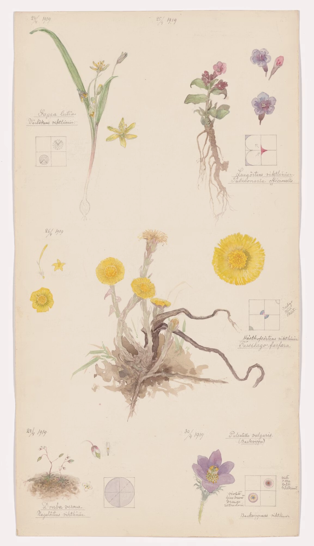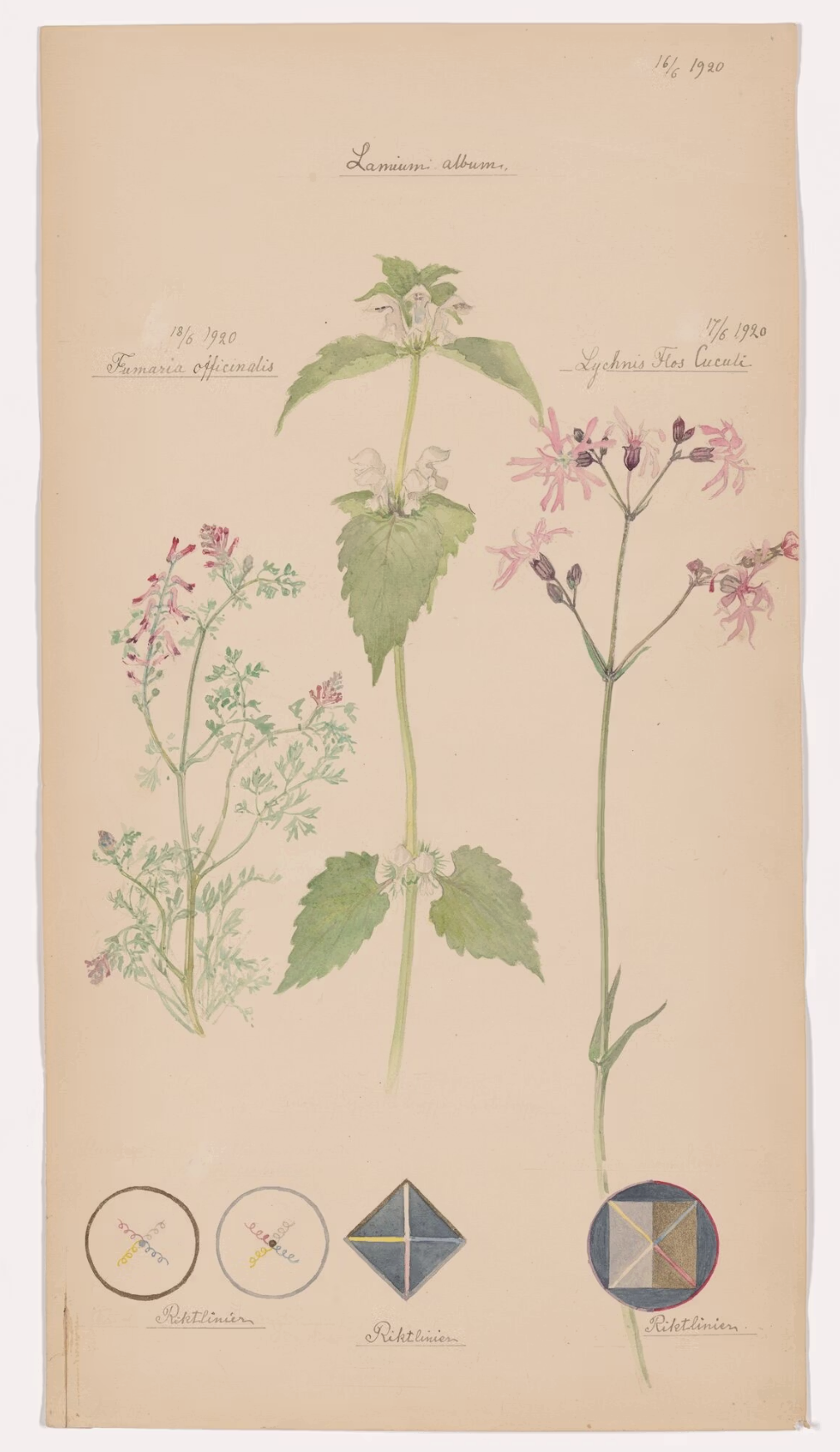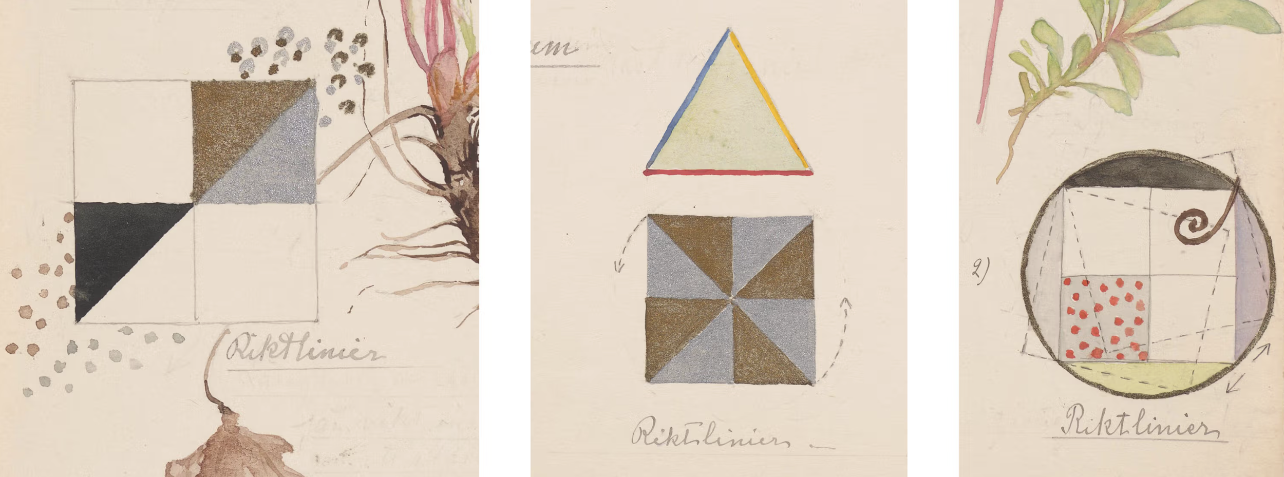 Hilma Af Klint made these paintings while taking care of her sick mother in Sweden. The little vignettes within the composition, where she uses geometric shapes to tie the natural world back to her work on the spiritual studies, is what really stands out to me. I was inspired by these moments, they create an additional dimension for information to enter the composition, and pair so well with the flowers images.