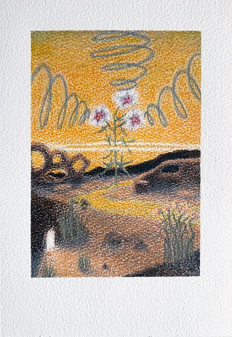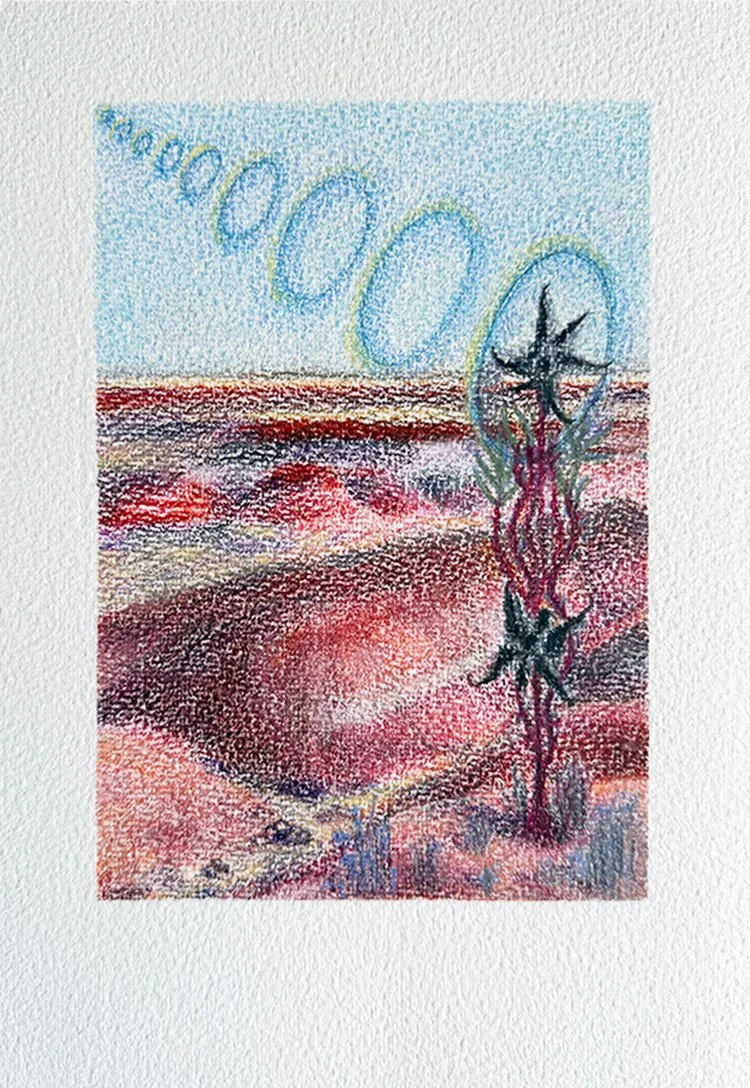 April 23, 2025. Colored Pencil on Arches Rough Cotton Watercolor Paper. 7”x 10”